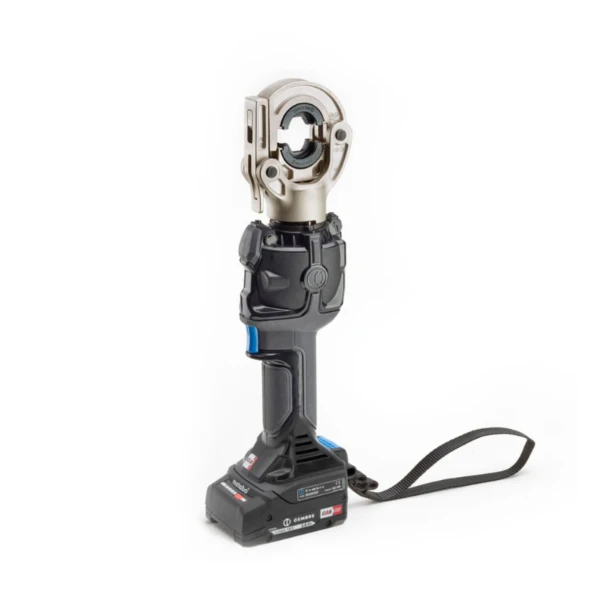 Accu hydraulische perstang voor het aankrimpen van kabelschoenen en verbinders. Deze handzame perstang wordt compleet geleverd met een twee CAS accu's, acculader en een handige koffer met ruimte om matrijzen in op te slaan. De tool is voorzien van een draaibare kop, een smart release syteem voor het automatisch openen na elke cyclus, een maximale druksensor en een beveiligde startknop. Het oled display geeft realtime gegevens over diverse parameters welke desgewenst ook digitaal uit te lezen zijn.