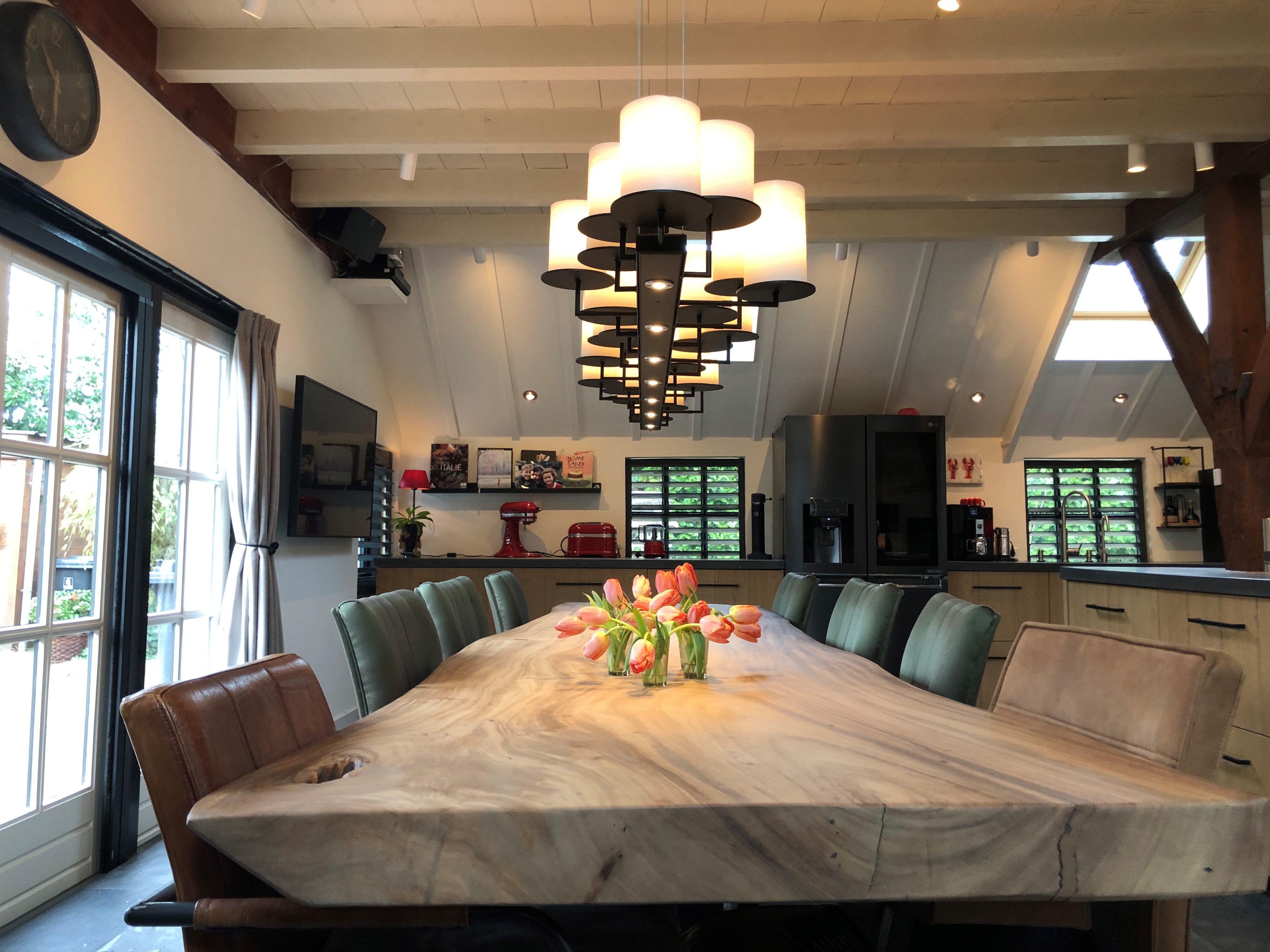 Sfeervolle inbouwspots verwerkt in unieke armaturen. Samen met Stout verlichting zijn er bijzondere hanglampen ontworpen, waarbij de Lumiko spots de tafel extra verlichten.